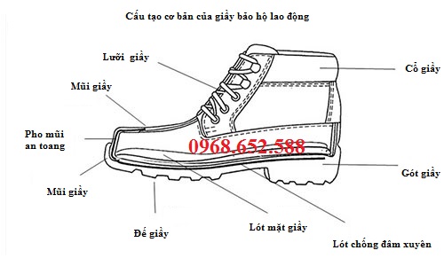 Một đôi giầy bảo hộ lao động cao cấp thông thường có cấu tạo cơ bản như sau: